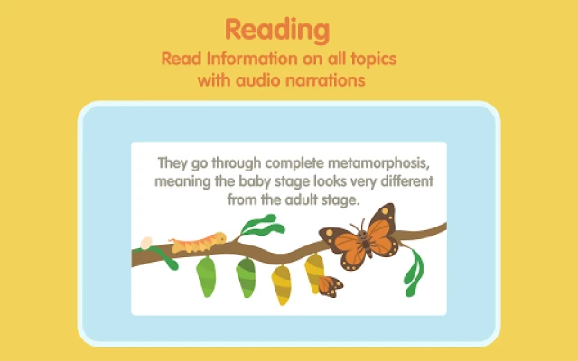 "Bugzzy Explorer"는 몰입감 넘치는 인터랙티브 학습 경험을 선사합니다. 다채로운 퀴즈와 두뇌를 자극하는 퍼즐 게임으로 아이들의 곤충 지식을 시험하고, 기억력과 문제 해결 능력을 자연스럽게 향상시킬 수 있습니다. 매혹적인 애니메이션과 전문 성우의 친절한 해설이 어우러진 교육용 영상은 곤충의 생애 주기와 서식지를 생생하게 전달하며, 아이들은 알에서 성충이 되기까지의 놀라운 변태 과정을 눈으로 직접 확인할 수 있습니다. 또한, 상호작용적인 활동을 통해 곤충의 이름 철자와 정확한 발음을 익히고, 관련 어휘력을 폭넓게 확장할 수 있는 기회를 갖게 됩니다.