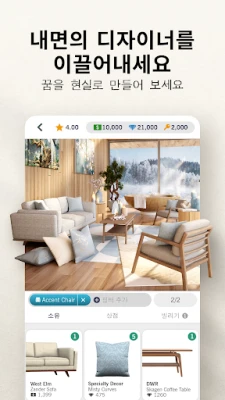 몰입감 높은 3D 빌더는 Design Home을 통해 공간 디자인의 새로운 차원을 경험하게 합니다. 주방, 침실, 욕실 등 어떤 공간이든 자유롭게 리모델링하고 디자인하며, 세심한 디테일까지 당신의 손길로 완성할 수 있습니다. 매월 업데이트되는 트렌드 스포트라이트와 유명 디자이너들과 함께하는 'Interior Designer Voices' 챌린지는 당신의 영감을 더욱 풍부하게 만들어 줄 것입니다. 또한 테이블 꾸미기 챌린지나 반려동물 추가 기능으로 디테일한 즐거움을 더하고, 활발한 커뮤니티에 참여하여 다른 유저들의 디자인에 투표하고 영감을 얻으며, 마음에 드는 아이템을 빌려 당신만의 개성을 완성해 보세요. Design Home은 단순한 게임을 넘어, 당신의 인테리어 디자인 꿈을 현실로 만드는 궁극의 플랫폼입니다.