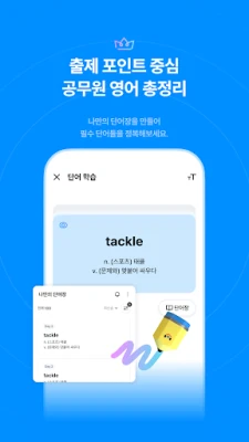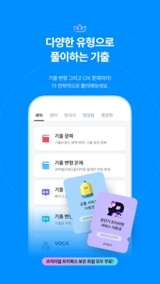 단순한 문제 풀이를 넘어선 '공풀'만의 전략적 학습 방법을 경험해 보세요. 원본 기출은 물론, 출제자의 의도를 꿰뚫는 변형 문제, 그리고 핵심 개념을 명확히 하는 OX 문제까지 다양한 유형으로 사고력을 확장합니다. 특히 공무원 영어를 준비하는 분들을 위해 출제 포인트 중심의 총정리 콘텐츠를 제공하며, 나만의 단어장을 만들어 필수 어휘를 완벽하게 숙달할 기회를 드립니다. 맞춤형 학습을 통해 약점을 보완하고 강점을 더욱 강화해 보세요.
