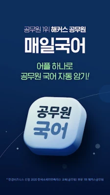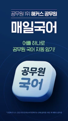매일국어 앱으로 해커스공무원 기본서에 수록된 방대한 어휘, 어법, 한자어를 매일 체계적으로 학습하세요. 공무원 시험 합격을 위한 필수 국어 지식을 탄탄히 다지고, 꾸준한 반복 학습을 통해 완벽한 실력을 완성할 수 있습니다.