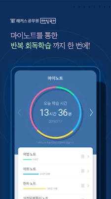 단순히 눈으로만 훑는 학습 방식은 이제 그만! 본 학습 도우미는 한자 독음부터 OX 문제, 실전 기출 문제에 이르기까지 다채로운 유형의 문제들을 제공하여 능동적인 학습을 유도합니다. 단순히 암기하는 것을 넘어 문제 해결 능력을 키우고, 풀어낸 지식은 더욱 오래 기억되도록 설계되었습니다. 나아가, '마이노트' 기능을 통해 매일의 학습 기록을 체계적으로 관리하고, 개인의 취약점을 정밀하게 분석하여 맞춤형 복습 계획을 세울 수 있습니다. 파트별 학습 진도와 소요 시간까지 스마트하게 정리되어, 당신만의 학습 전략 수립을 돕습니다.
