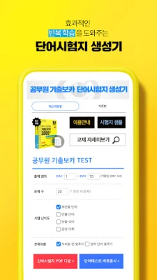 공무원 영어 합격을 위한 필수 앱, 해커스공무원 기출보카입니다. 50일 만에 기출 영단어를 완벽 마스터하세요. 최신 빅데이터 기반 핵심 어휘, 효율적인 학습 및 복습 게임, 나만의 단어장으로 언제 어디서든 스마트하게 합격에 필요한 공무원 영단어를 암기하고 복습할 수 있습니다.