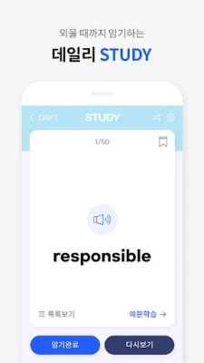 개인 맞춤형 학습을 위한 기능도 놓치지 않았습니다. '나의 단어장'에서는 어렵거나 중요하게 느껴지는 단어들을 별도로 모아 복습 효율을 극대화할 수 있으며, 완벽히 암기한 단어는 보관함에서 삭제하여 학습의 성취감을 느끼고 깔끔하게 관리할 수 있습니다. 새로운 학습을 시작하거나 이전 진도를 초기화하고 싶다면 '환경설정'의 '진도율 초기화' 메뉴를 활용해 보세요. 2024년 또는 2025년 버전별로 진도율과 나의 단어장을 손쉽게 리셋하여, 언제든 새로운 마음으로 학습 여정을 시작할 수 있습니다. `진가영 공무원 영어앱`은 여러분의 학습 몰입을 최우선으로 생각하며, 최적화된 환경에서 오직 어휘 실력 향상에만 집중할 수 있도록 지원합니다.