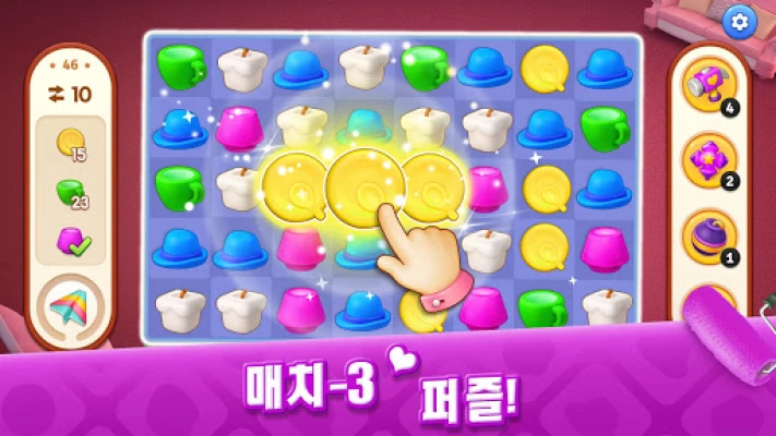 마이홈에서 꿈꾸던 인테리어를 현실로 만드세요. 재미있는 매치 3 퍼즐을 풀고, 손가락으로 콘도부터 대저택까지 나만의 공간을 디자인하고 꾸며보세요. 무료로 상상의 집을 완성할 수 있습니다.