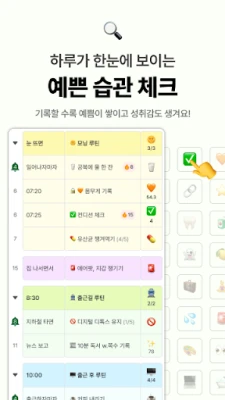 **마이루틴**과 함께라면, 아침부터 저녁까지 당신의 하루가 한눈에 펼쳐지는 맞춤형 루틴 계획표를 만들 수 있습니다. 귀여운 이모지와 눈에 띄는 형광펜으로 당신만의 개성을 담아 계획을 시각적으로 즐겁게 관리하세요. 중요한 루틴이나 습관을 놓치지 않도록 스마트 알림, 편리한 위젯, 그리고 Wear OS 연동까지 지원하여 언제 어디서든 당신의 일상을 손안에서 제어할 수 있습니다. 어떤 습관부터 시작해야 할지 고민이라면, 건강, 생산성, 성장 등 다양한 테마별 추천 루틴에서 영감을 얻거나, 다른 사용자들이 실천하는 유용한 루틴들을 터치 한 번으로 당신의 계획표에 추가하며 나만의 '갓생'을 시작할 수 있습니다.