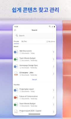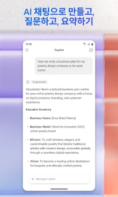 Microsoft 365 Copilot은 회사와 집에서 당신의 생산성을 높이는 AI 중심 앱입니다. AI 도우미와 채팅하고, 콘텐츠를 만들고 편집하며, 문서를 스캔하고 프로젝트를 관리하세요. 이동 중에도 파일을 빠르게 찾아 더 적은 노력으로 더 많은 작업을 성취하도록 돕습니다.