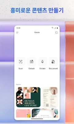 이제 전문가의 손길이 닿은 듯한 콘텐츠 제작도 문제없습니다. Microsoft 365 Copilot은 사용하기 쉬운 템플릿과 도구를 제공하여 이미지, 포스터, 배너, 비디오, 설문조사 등 다채로운 콘텐츠를 손쉽게 만들고 편집할 수 있도록 돕습니다. 모바일 앱을 통해 문서, 사진, 메모 등 어떤 것도 즉시 스캔하여 디지털화하고, 휴대폰에 있는 Word, Excel, PDF 파일을 손쉽게 업로드하여 Copilot의 답변을 받거나 생성된 파일을 바로 저장할 수 있습니다. 아이디어, 문서, 링크를 한곳에 모아 Copilot 전자 필기장에서 자동으로 요약하고 관계를 연결하며 프로젝트를 효율적으로 관리하세요. Microsoft 365 Copilot은 Word, Excel, PowerPoint, PDF를 통합하여 이동 중에도 파일을 찾고, 편집하며, 스캔하고, 콘텐츠를 생성하는 모든 과정을 매끄럽게 연결합니다.
