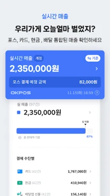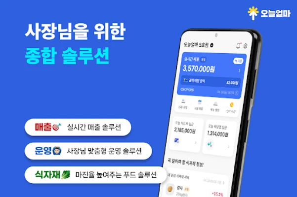 바쁜 사장님의 일상, 매장 운영의 모든 숫자를 손쉽게 관리하고 싶지 않으신가요? 오늘얼마는 복잡한 매출 데이터를 한눈에 파악하고, 스마트한 운영 전략을 세울 수 있도록 돕는 비즈니스 필수 도우미입니다. 포스 시스템과 완벽하게 연동되어, 언제 어디서든 우리 가게의 핵심 정보를 실시간으로 확인하는 경험을 선사합니다.