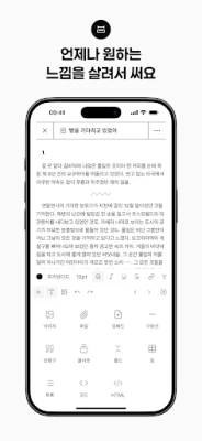 글쓰기의 모든 여정, Typie가 함께합니다. 아이디어의 작은 불씨가 한 편의 완성된 글로 피어나기까지, 창작의 흐름을 방해하는 모든 불편함을 Typie는 세심하게 덜어냅니다. 자간, 행간, 들여쓰기 등 미세한 서식 조정부터 이미지, 표, 링크 등 다채로운 요소를 유연하게 배치하여 당신의 상상력을 그대로 펼쳐낼 수 있습니다. 몰입형 타자기 모드와 줄 강조 기능은 오직 글에만 집중할 수 있는 최적의 환경을 선사하며, 다크모드 지원과 외부 키보드 연결 시에도 매끄러운 편집 경험을 제공하여 어떤 환경에서도 막힘없는 필기를 가능하게 합니다.
