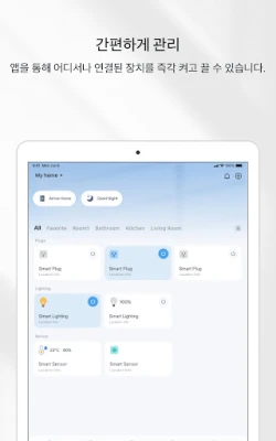 현대인의 바쁜 삶 속, 당신의 공간을 더욱 스마트하고 편리하게 변화시키세요. Tapo는 어디에 있든 탭 한 번으로 집 안의 모든 기기를 손쉽게 연결하고 제어할 수 있게 돕습니다. 거실에서 침실, 주방까지, 어떤 공간의 장치든 직관적으로 관리하며 여러 기기를 한 번에 제어할 수 있도록 그룹화하는 기능은 일상의 번거로움을 덜어줍니다. 소중한 사람들과 장치 제어 권한을 공유하여 함께 편리함을 누릴 수도 있습니다. 당신의 생활 패턴에 맞춰 Tapo 장치들이 스스로 움직이게 하는 스마트 액션으로, 아침에는 조명이 자동으로 켜지고 외출 시 모든 전원이 꺼지는 등 사용자 맞춤형 홈 오토메이션을 경험해 보세요.